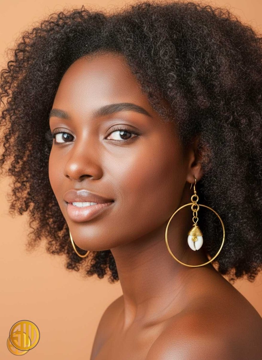 Alliez symbolisme et élégance avec les boucles Nia. Inspirées des bijoux traditionnels africains, elles associent un grand anneau doré à un coquillage naturel délicatement enroulé dans du fil de laiton. Un bijou audacieux, artisanal, et profondément ancré dans l’héritage culturel africain.