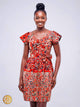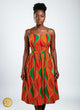 Cintrée à la taille pour mettre en valeur la silhouette, elle offre une coupe mi-longue féminine et chic. Son style unique combine tradition africaine et modernité, faisant de cette robe un incontournable pour celles qui aiment se démarquer.