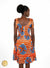 Combine comfort and femininity with this African wax midi dress from SublimeWax . Made from a vibrant African fabric in shades of orange, blue, and white, it features a flared cut and intricate details.