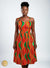 Wax print midi dress with straps – Red, green and yellow wavy patterns
